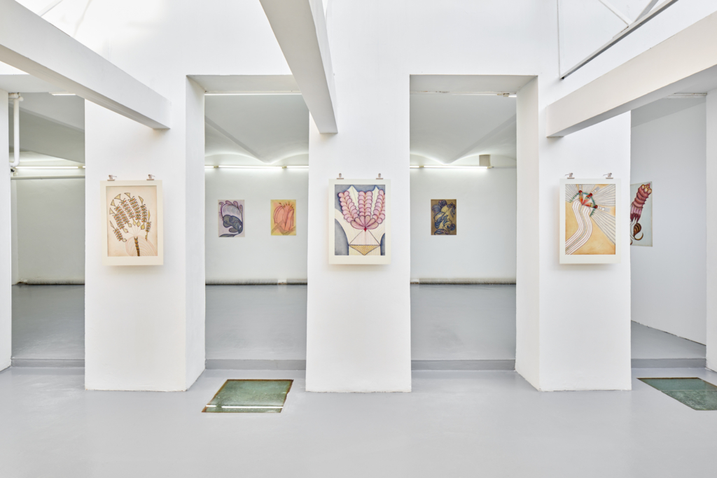 Self-taught artist Anna Zemánková (b. 1908 in Hodolany, Austria-Hungary, d. 1986 in Mnišek pod Brdy, Czechoslovakia) described her work as ‘growing flowers that are not grown anywhere else.’ She took up her artistic practice in the early 1960s, at over fifty years old, creating her lyrical compositions during the early hours before dawn, from four to seven in the morning, before attending to domestic duties. During this time, she created an imaginary herbarium of otherworldly organisms on paper. Her work is characterised by remarkably complex combinations of ink, pastel, perforations, threads and textiles, forming an ominously beautiful botanical world of ever-metamorphosing shapes. Roger Cardinal remarked, ‘Her sweet and docile flower paintings leave a poisonous aftertaste.’