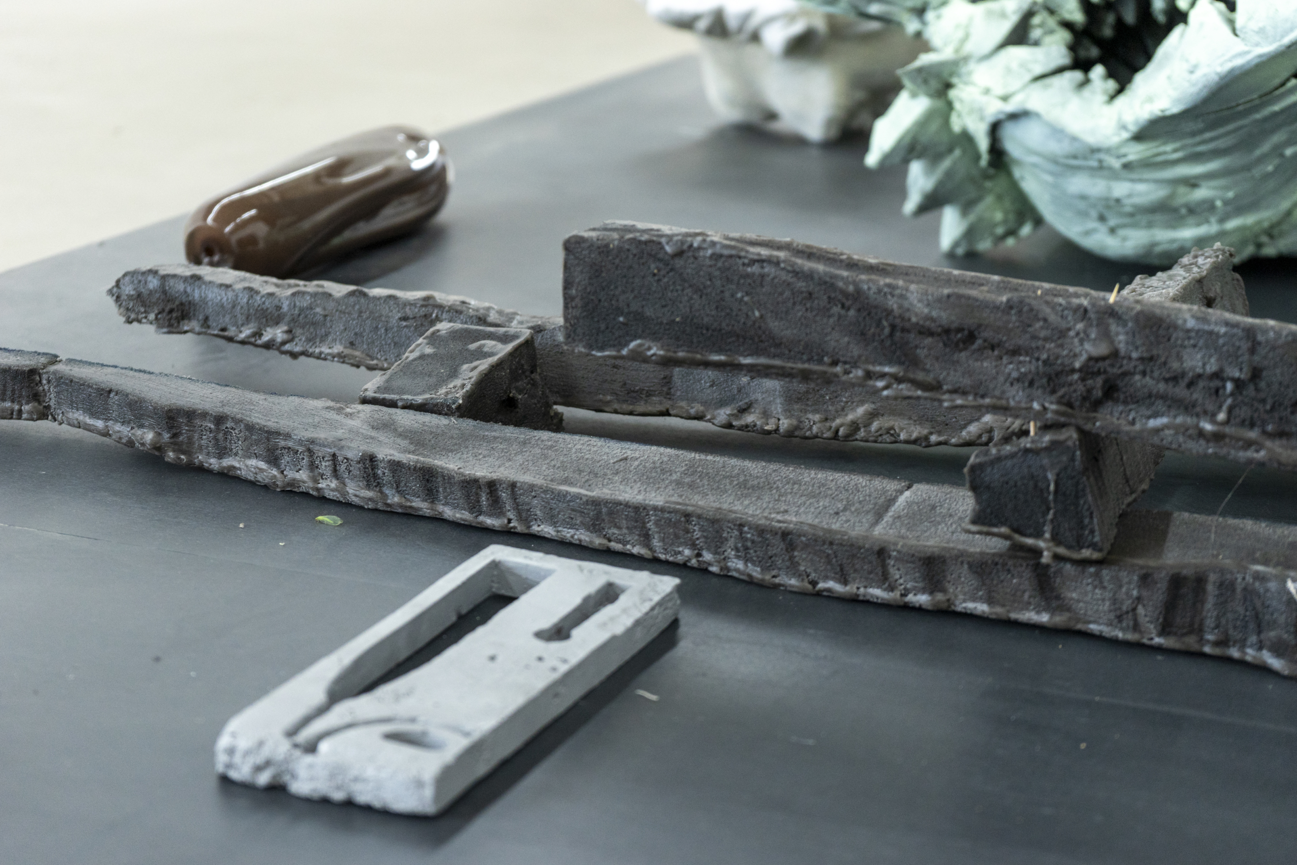 In her practice, Haugaard Madsen makes visible and negotiates the conditions around the production of culture, meaning, and value. Material aspects of production thereby serve as her starting point: her works often consist of objects that have accumulated in her own working space or that she finds in the studios of artist friends or in the workshops and warehouses of art institutions. She collects materials and objects, subjects them to a process of reinterpretation and transforms them until a network-like hybrid emerges that makes the complex interrelationships of art-making tangible.