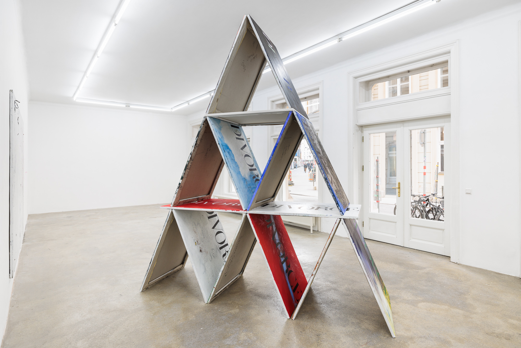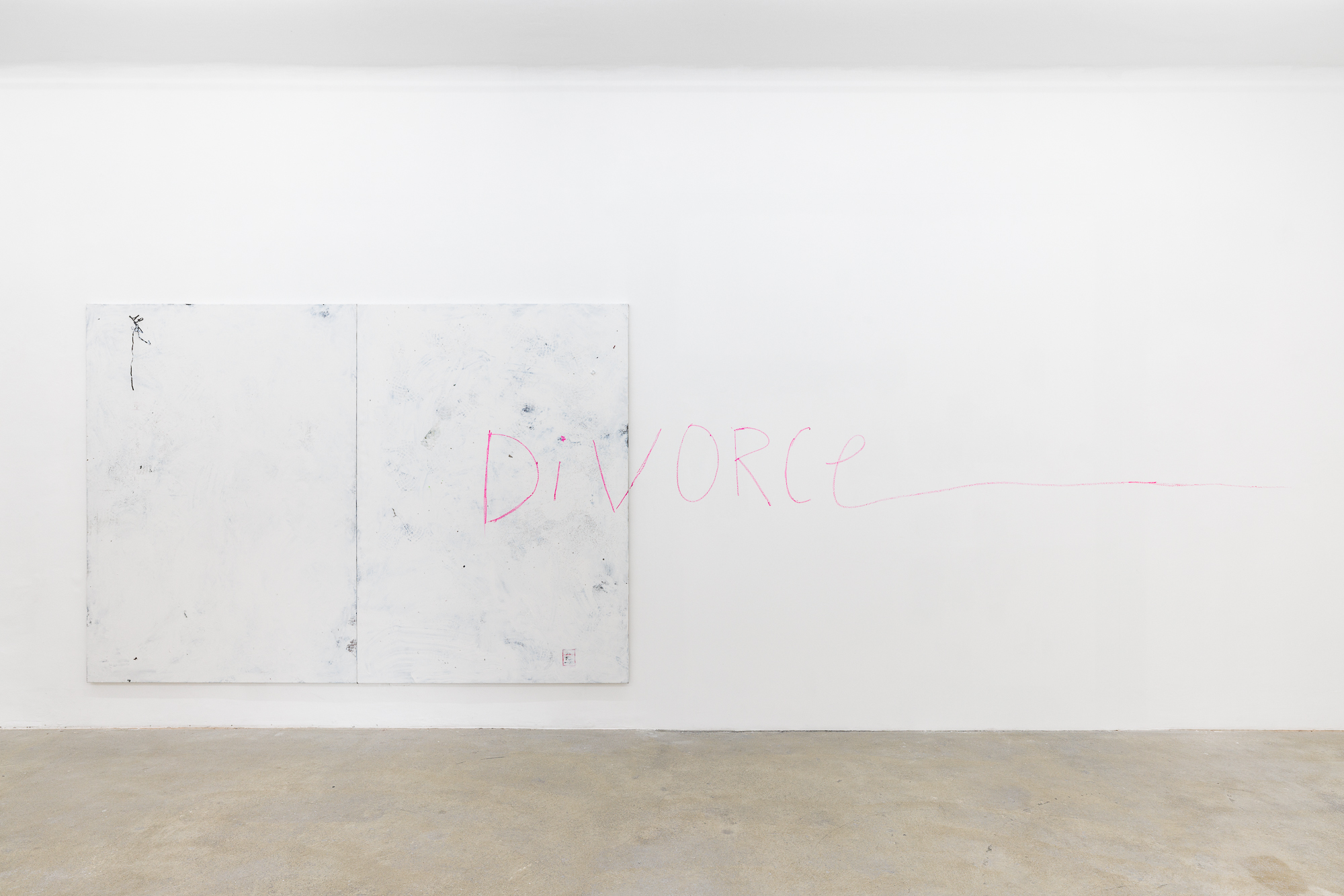 Jasmine Gregory, Where dreams become reality, 2025, oil glitter, studio floor dirt, Gucci Rouge à Lèvres Vantine Fuchsia 402 on linen, 209,5 x 300 cm
