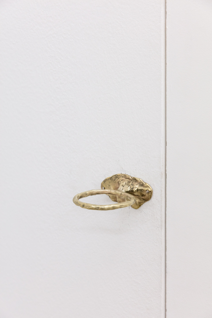 Loderer’s work for Quiet Fonts at Sophie Tappeiner is logical in its development as well as radical, expanding the term sculpture. As she examines the antithetical nature of casting sand versus metal, in examining temporary versus precious materials, and found versus made forms, her practical inquiry borders on the philosophical and conceptual revelations of Minimalism and Land Art. Her inversion of metal casting reflects the negative, collapsing the space around an object or memory. For the sculptor, it stands for the studio, a clear workspace, and good materials.